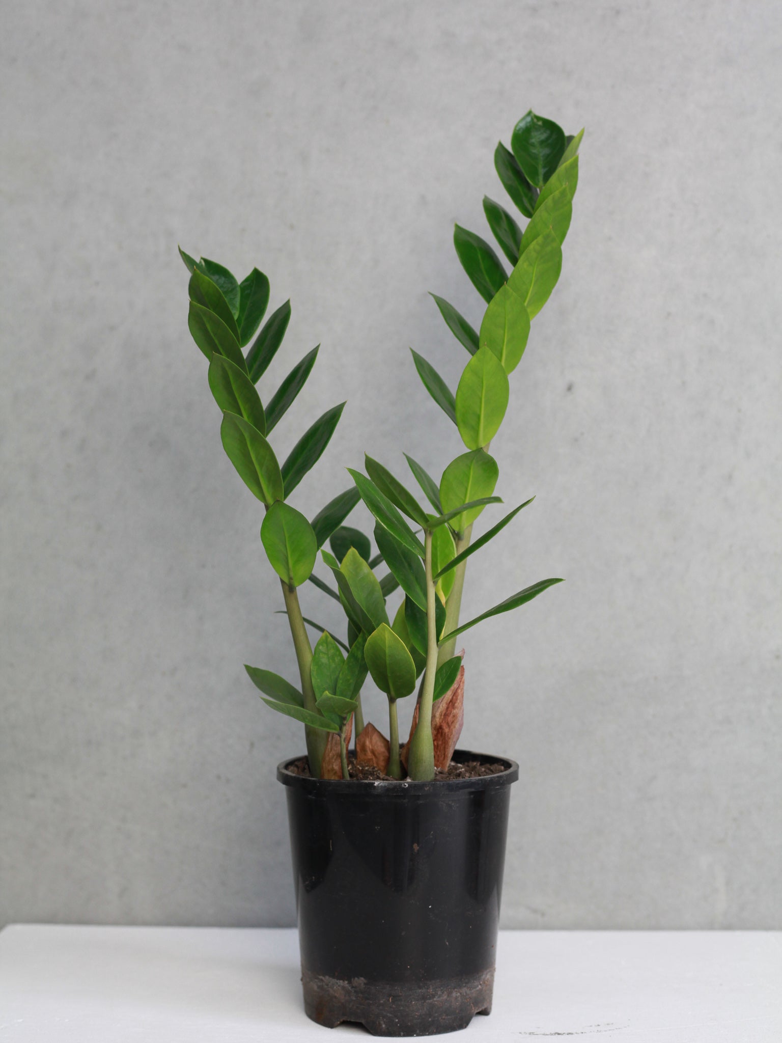 Also known as the ZZ plant a great choice for a forgetful owner due to its ability to thrive on neglect. It is an excellent air purifier and will tolerate low light spaces. It’s happy in low light conditions but will thrive in indirect bright light.